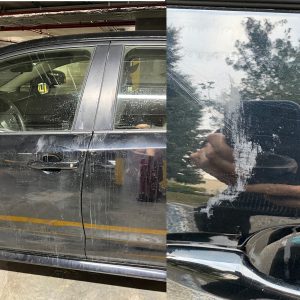 That tenant also described the substance on the garage ceiling as an “acid leak,” stating that after they left their car under it while they were away, they returned to the paint on their car etched.
